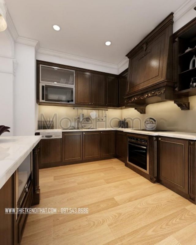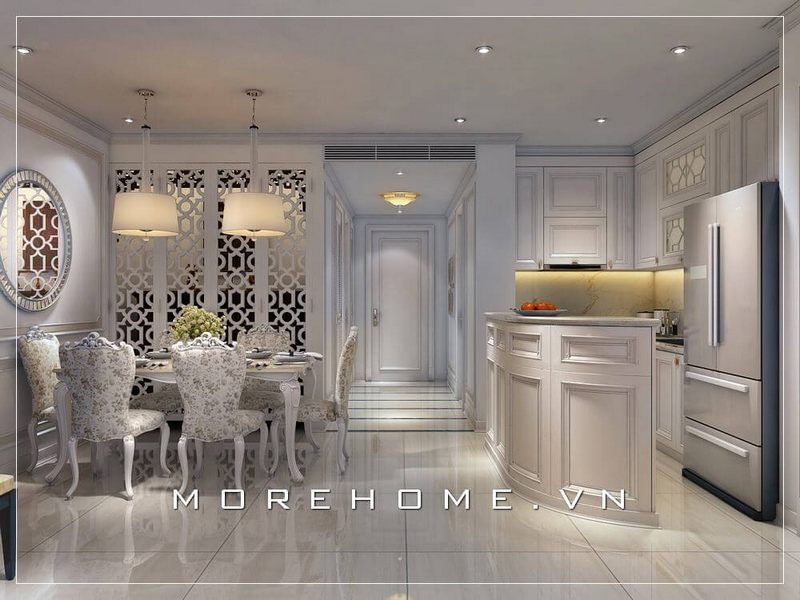 Thiết kế nội thất phòng bếp chung cư phong cách tân cổ điển sang trọng và đẳng cấp