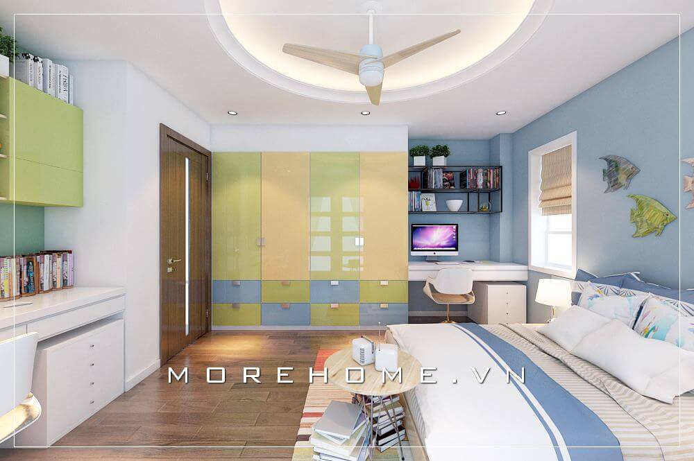 Mẫu thiết kế nội thất phòng ngủ con trai cao cấp cho chung cư với cách bố trí nội thất một cách hợp lí, khoa học